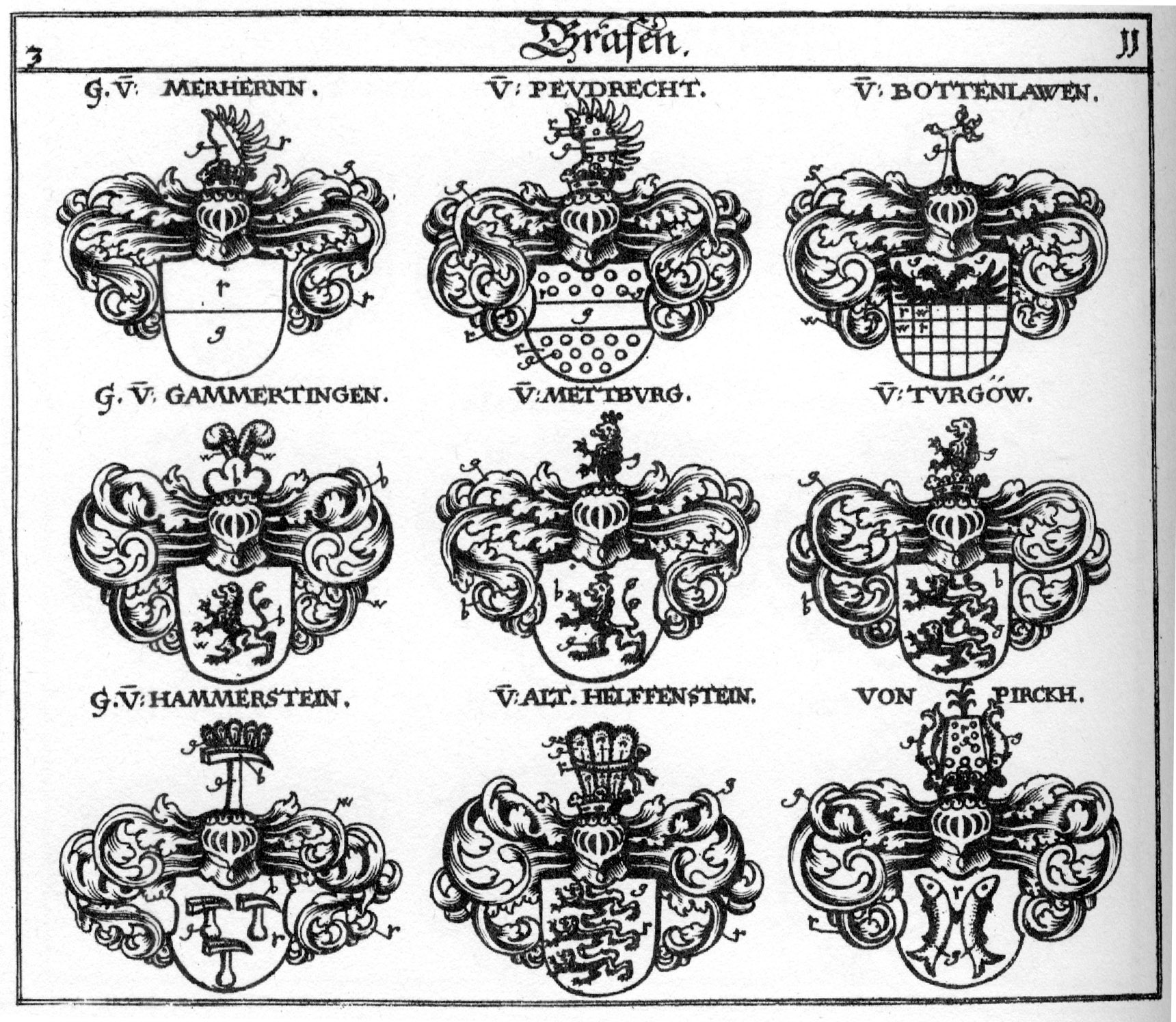 These ancient German Coats of Arms may have belonged to your ancestors. The Heraldic Crests are a colorful addition to your genealogy or family history.